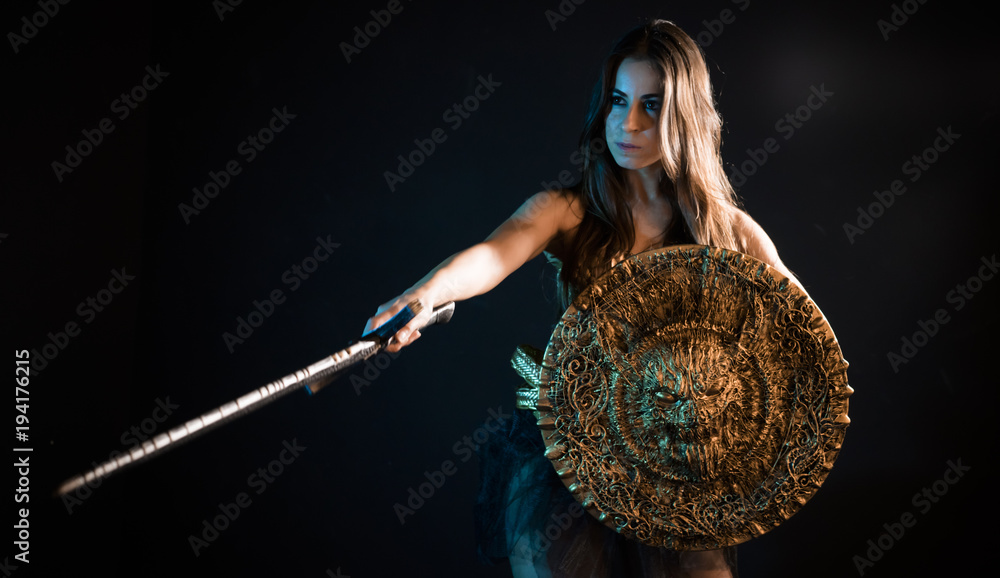 Medieval Valkyrie Warrior Woman With Golden Armor Iron Coat And Big Warrior Sword Stock Foto Adobe Stock